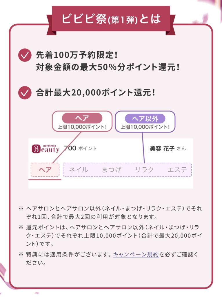 ビビビ祭り☆Hot PepperBeautyのお得なイベント情報 2026 2/02 お知らせ 2026年2月2日 目次Hot PepperBeauty初のいつもよりポイントが多く付く期間限定ポイント還元イベント! 是非!この機会にお得なイベントを利用して予約してみませんか?(^^♪ お知らせ よかったらシェアしてね! URLをコピーしました! URLをコピーしました! よもぎって凄いんです! ダイエットに適したタイミング この記事を書いた人 cocoonyomogi 関連記事 完全個室だからこそ・・・ 2026年3月2日 3月の営業日のお知らせ 2026年2月28日 首 肩 腰の凝りにお悩みの方へ! 2026年2月26日 3月の季節ハーブ 2026年2月25日 最近お肌の乾燥が気になりませんか? 2026年2月23日 2月の季節ハーブ 2026年2月22日 話題のフェムケア商品【REFEMOON】!! 2026年2月21日 足湯の効果♪ 2026年2月20日